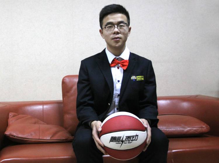“刚下场,把老师拍的表演时照片用微信发出去,立刻就引爆了朋友圈,上百条留言,我已经回复不过来了。我第一次接触花式篮球是在视频里,看到这个视频以后就期待着能够学习。没想到高一刚入读剑桥中心,学校就有花式篮球社,机会来得这么快完全出乎意料。但是学习花球需要真正的付出,每一天都需要自己去训练,很多时候一些看起来很cool的动作都需要长时间的训练才能做到,它需要一种认真的态度,需要球员自己去思考去创新,它的表演难度系数很大,真正达到世界级水平的人并不多。加上它本身对于身体协调性,球技和全身力量有比较高的要求,对我来说这种challenge也是让我想要去完成、去做到像我们教练一样水平的动力。花式篮球可以让我找到一种全神贯注的感觉,我学它不是为了玩,是为了能够掌握一个我真正喜欢的运动技能,让它在我未来的学习工作中可以作为一种放松方式,花式篮球对于我自己来说是一种我可以为之不懈去奋斗的爱好。”
