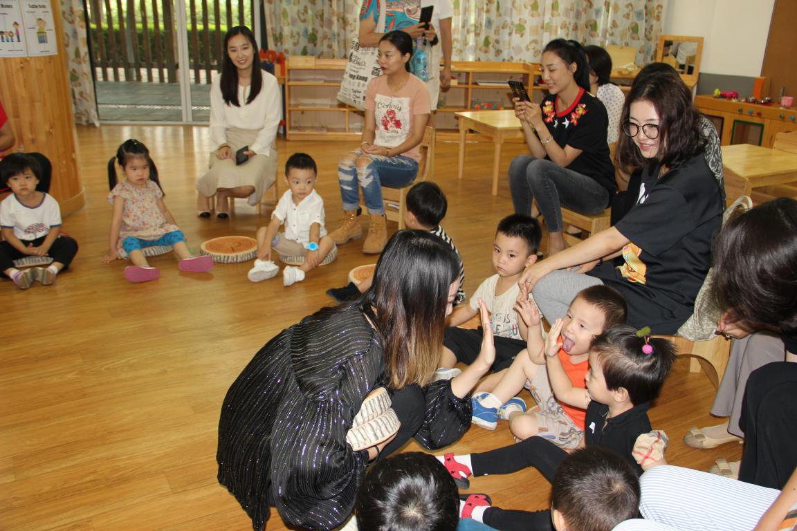 Summer和小朋友们一一拍手互动。