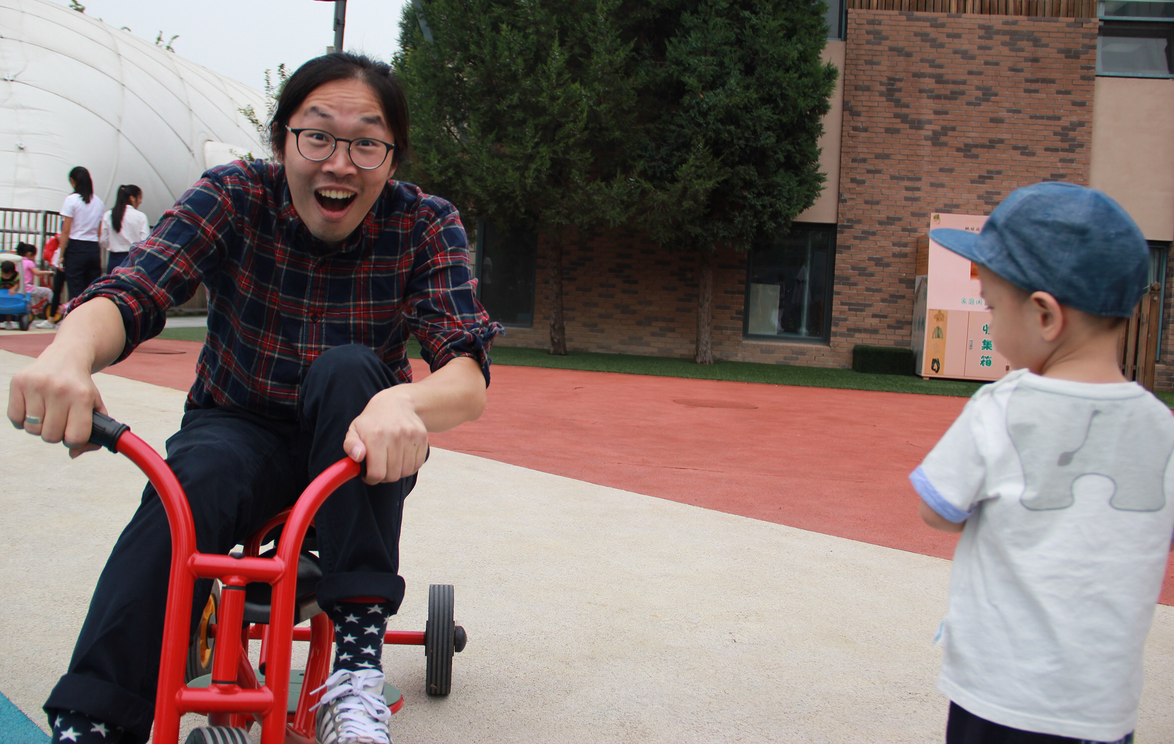 调皮的Kevin老师也开心的玩耍起来。