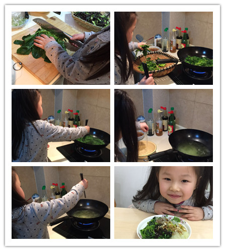不要小看我这道菠菜凉拌粉丝,我可是经过班里三次评审后才角逐出来的。哼哼~,味道可开胃咯!