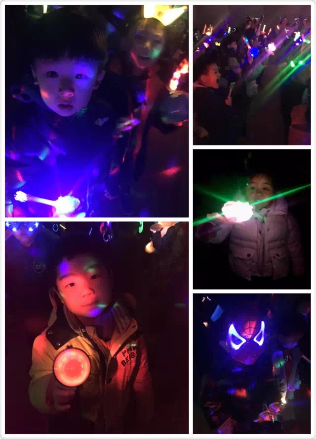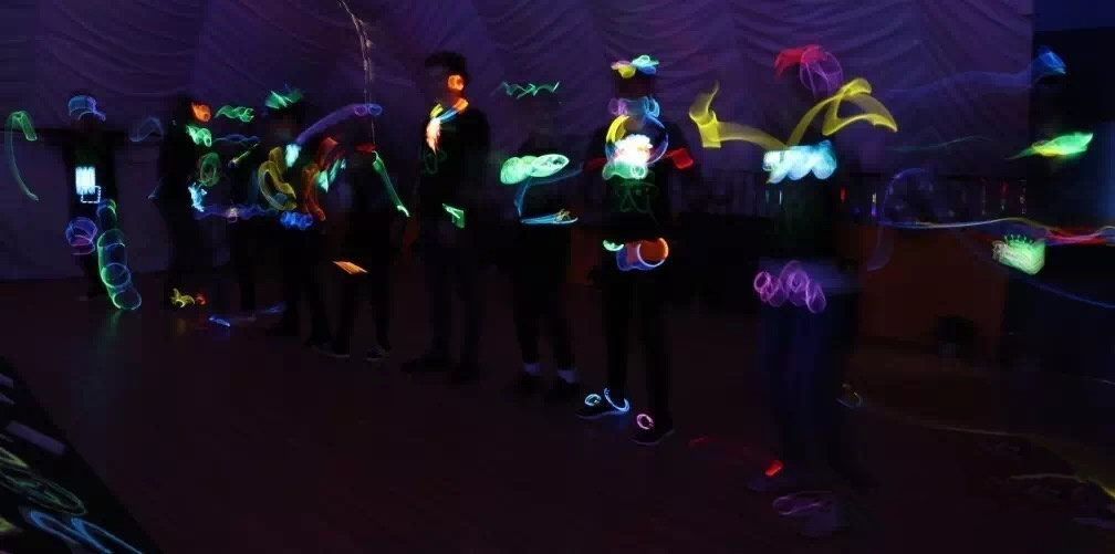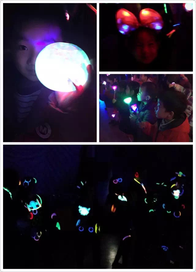 关了灯,手中的荧光在黑暗中随着音乐闪耀。