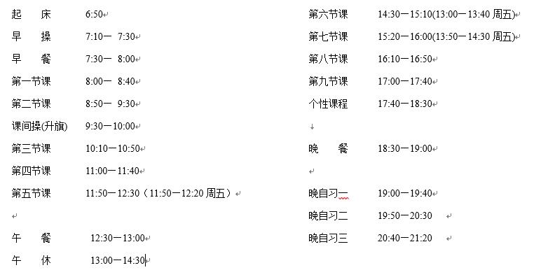 初中部作息时间