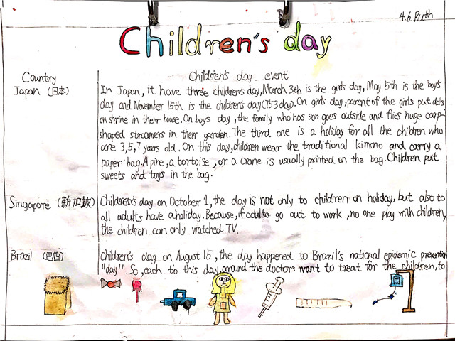 地球村的孩子是怎么过六一的呢?带着这样的悬念四年级的孩子们以PBL项目式学习的方式展开了探讨。孩子们围绕“When is the Children's Day in other countries? What do children do on that day??”的这一问题搜集资料、自主探究;课上让孩子们通过比赛、游戏、讨论、分享等方式了解国际六·一儿童节的产生背景、节日文化,相互交流学习。别样的文化,不一样的六一——在这个探究的过程中,学生不仅体验了不同国家庆祝儿童节的习俗,培养学生的跨文化意识,同时也发展了学生的探究能力。