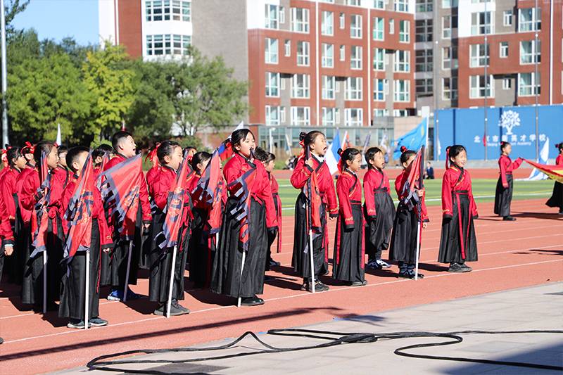 三年级的全体师生身着戎装,