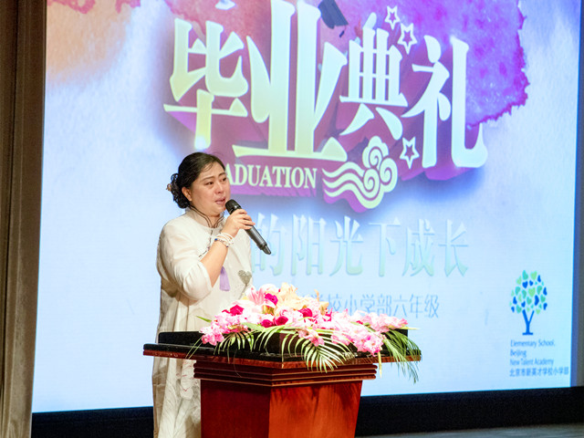此时此刻,这个世界上最爱他们的人——父亲、母亲,那心情比他们还要激动。小学部家委会秘书长刘蓉女士走上了舞台,向校领导、向老师、向全体六年级毕业生及其家长致辞。