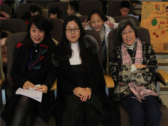 前来观看数独大赛的嘉宾:朱丽丽校长(左)崔晓梅主任(中)吴曼丽专家(右)