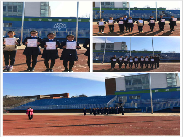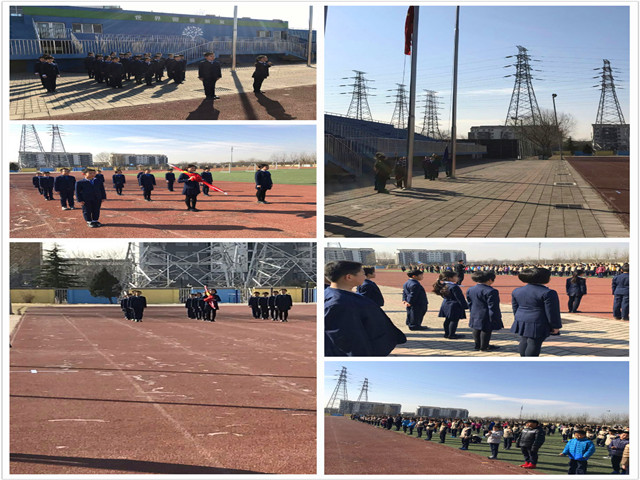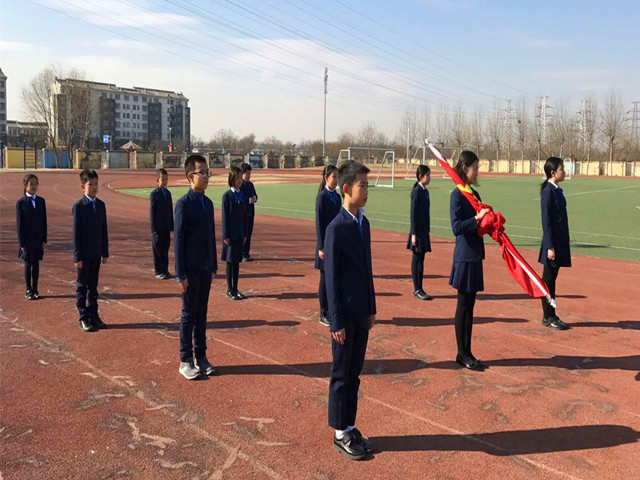 本周升旗仪式是由四年级六班的孩子们主持,他们飒爽英姿,生气勃勃,阳光、自信,充满朝气。操场上虽然有点冷,但孩子们在沉静中,坚定着自己的身姿。出旗,同学们昂首阔步,气宇轩昂地向前迈进。在高小部全体师生雄壮的国歌声和悠扬的校歌声中,国旗和校旗依次在新一周的操场上冉冉升起,孩子们美好的愿望也随着国旗和校旗一起飞扬。