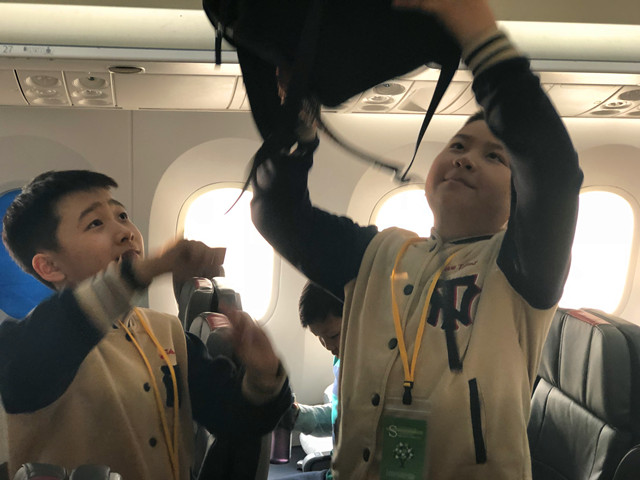 到达机场候机厅,我没有按惯例在前面带队,只是弱弱地问了孩子们一句:孩子们,这机场这么大,我们该先做什么呢?一位同学告诉我:老师我们需要先办理登机牌,然后托运行李,之后……, “哇,你这么棒,那你在前面带路吧。”只见他们自信地向前走去,而在他们身后的我眼中充满了骄傲。到达美国机场后,我们需要在自助机上办理入境手续,之后再进行入境。