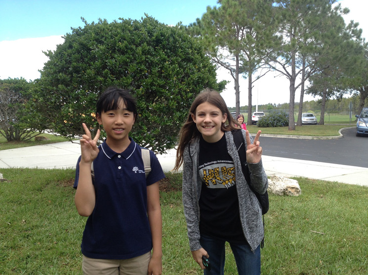 前几天在课堂上,我们的孩子还有些害羞,只是安静地听讲或是记笔记,不敢参与课堂讨论。我看到之后心里很着急,课下就找孩子们谈心,鼓励他们要积极参与,从回答简单的问题开始,一点一滴地融入这里的学习。慢慢地,我看到了孩子们的变化:数学课上,有孩子回答完问题后给我一个得意自信的眼神;体育课上,我看到他们在阳光下挥汗如雨,和美国孩子一起奔跑抢球,享受运动的快乐。