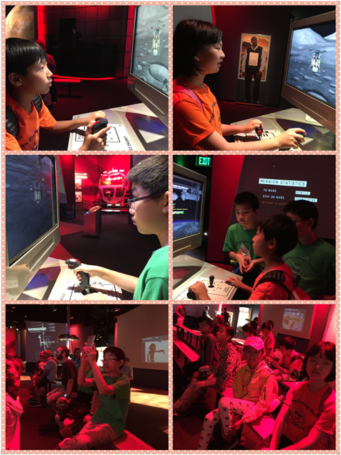 第二天,孩子们来到了肯尼迪航天中心。肯尼迪航天中心囊括了美国所有向地球同步轨道发射的任务。还发射了“阿波罗”飞船、“天空实验室”及各种行星际探测器。孩子们在这里观看了火箭发射的视频,看到了航空航天飞船和器械,体验了太空失重的感觉,为未来的科技留下自己美好的设想!