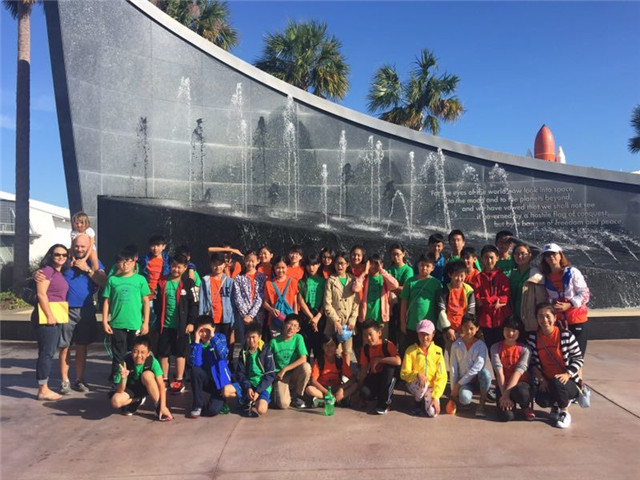 为了丰富孩子们的生活,开阔孩子们的视野,锻炼孩子们的能力,恒信彩赴美交换生在周末之余开启了丰富多彩的校外生活。10月28日,孩子们在老师的带领下前往奥兰多迪士尼和肯尼迪的航天中心。七点五十,美国的爸爸妈妈准时把孩子送到了学校,孩子们带着兴奋和愉悦乘上了大巴。