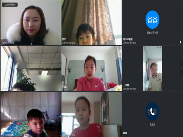 之后的一天晚上,班级群里一位家长不停地发起群聊。经了解后知道原来是双胞胎爸爸、妈妈被隔离在外地,爷爷独自在北京带孩子,但爷爷对电子设备不太了解。王雪老师知道这个情况后就对双胞胎格外关注与照顾。当语文学科沟通开始使用Zoom会议室的时候,王老师提前给双胞胎爷爷打电话,帮助爷爷了解Zoom使用流程,之后王老师与爷爷保持了良好的沟通。爷爷的学习能力很强,从开始时只会发短信,到现在已经能够很好的使用钉钉发图片、发语音、交作业了。
