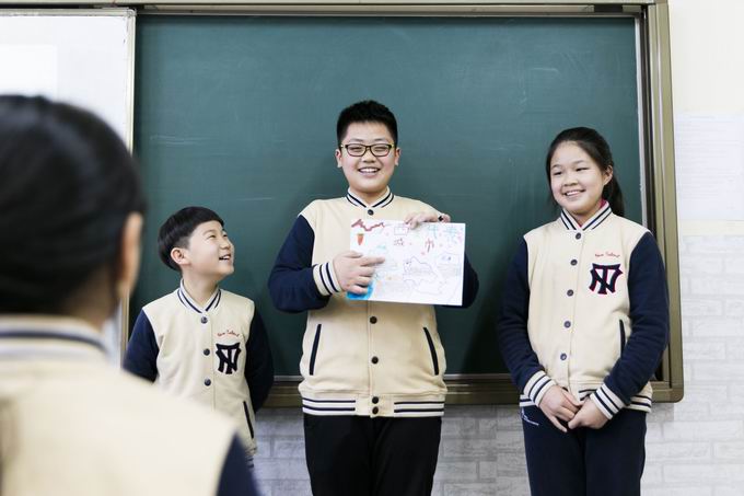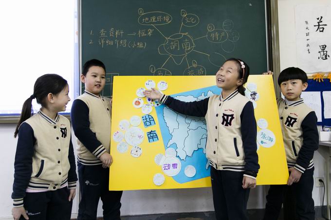 “学科融合”也是本次活动的一大特色,学生在探究各地地理环境、自然资源、人文历史、风土人情的过程中,从地理、历史、经济、社会、人文等多方面自主学习,弥补了现阶段小学课程在这些领域的缺失。在交流展示的过程中,学生又锻炼了用双语进行表达的能力,他们大方从容地与外教分享着自己探究的成果和乐趣,为他们成长为一名“世界公民”做了准备。