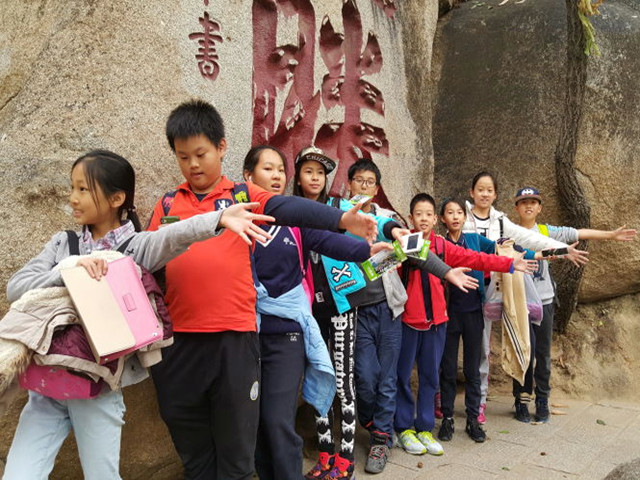 这次是六年级学生在小学生活的最后一次外出实践活动,师生们也更加珍惜。一路,我们寻幽泉以踏古径,赏山色以揽秋芳。