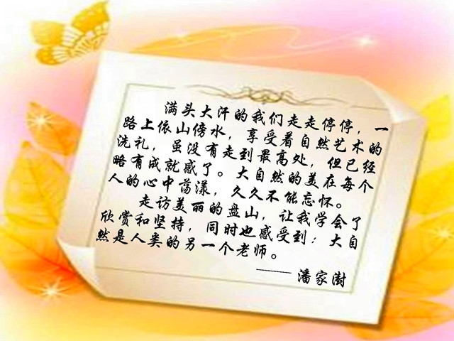 我们心里知道这盘山就像我们的小学生活,现在我们已经站在小学之巅,但前方有人生更高的山峰等着我们去超越,我们信心百倍!