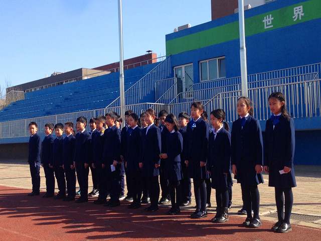 在阳光普照的操场上,恒信彩高小部正在举办新学期的第一次升旗仪式。仪式上,孩子们在旗前讲话,呼吁大家“小行动,大改变,积蓄成长正能量”,号召大家一起保护地球母亲,让我们共同的家园更加美丽!