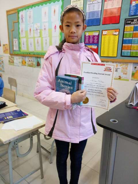 These students’ journals were then sent to the Scholastic headquarters in Shanghai for the final top award of “Reading Star” for Beijing New Talent Academy. This award went to Nemo Chen for her beautiful handwriting, well-written opinions and amazing illustrations. Each of the winners received a book from Scholastic and a certificate of recognition. The Reading Star received a set of books in addition to the other prizes.