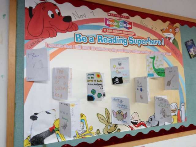 From November 7-27, students in Grades 4-6 higher level English classes, led by Richard Keeling, Catherine Stafford and Ken Fortunah, participated in the Scholastic Book Club 21 Day Reading Challenge. Each student was given a reading journal and instructed to read each day, then write something about the section of the book they read, including any new vocabulary words they learned, their favorite part of the story and their opinion. As an option, students could also draw a picture of what they had read.