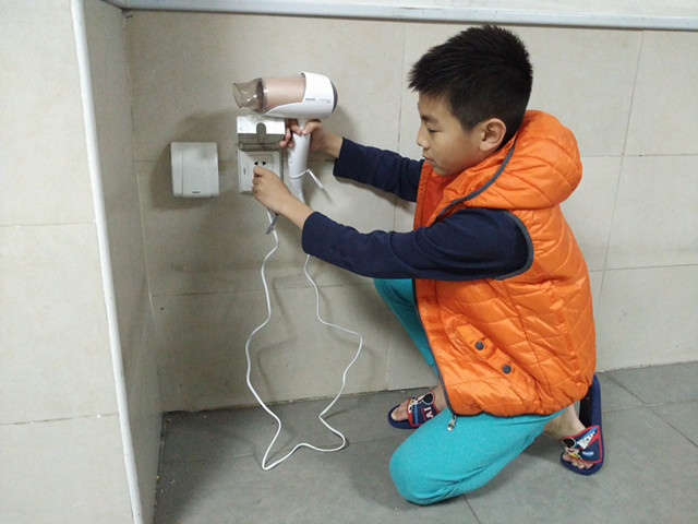 手湿的时候不要摸插座,会触电的!