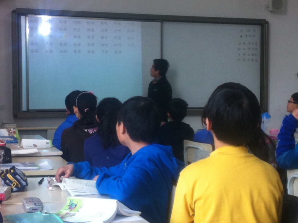 站在讲台上的王老师则不厌其烦地要求学生动作要迅速,他说:“同学们,还记得每次上课前老师对你们说过的人生中很难能可贵的一个精神是什么吗?”学生们很快响应道:“守时!”“既然大家都知道,那么我们接下来要做什么呢?”老师这么一说,我看到全班学生很有节奏地一边拍掌一边齐声喊了五个数字,“一、二、三、四、五!”声音刚一落,全班鸦雀无声,学生个个坐的端正、笔挺。老师对学生的表现表示赞许,并且表扬了坐的最端正的一个小组。接着,师生相互行礼,一堂课正式开始了。