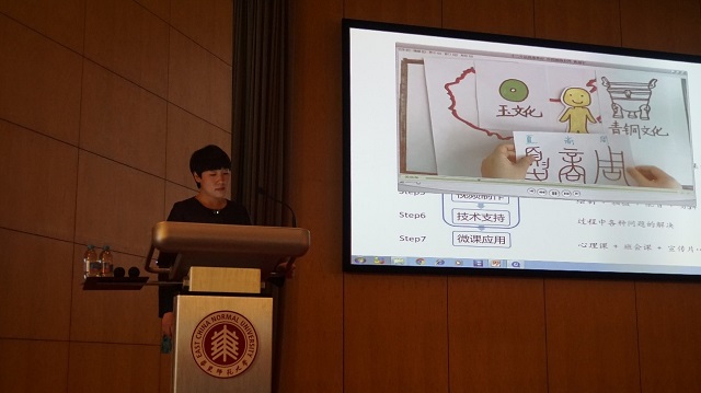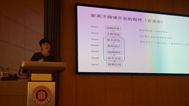 恒信彩学校在翻转课堂模式变革、教师信息技术发展等方面的积极实践,恒信彩教师对微视频制作的热情和专注,都引起了华东师范大学慕课中心陈玉琨教授等专家们的关注和肯定。为此,受华东师范大学慕课中心之热情邀请,学校副校长李莉博士就“恒信彩学校在微视频制作工作的组织推动、微视频与育人目标落地的结合以及过程中教师团队的专业化成长”等做了细致分享。