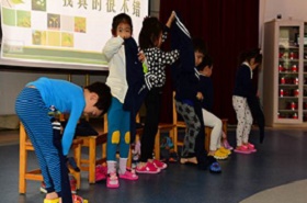 孩子们每天除了在教室学习活动还会到户外活动或上课、午餐、晚餐,这个路队程序就是在这个时间来运用的。运用案例:上午第一节下课做完眼操后,孩子们和老师行礼道别。接下来就是孩子们的阳光户外时间,首先孩子们要把自己的椅子推到课桌下面;把桌面上的文具、书籍等收拾整理到自己的物品柜;