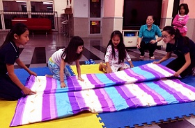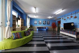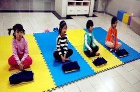 晚餐后部分幼儿吃完晚餐后陆续开始洗漱,然后搬椅子回到图书区,选择一本书籍阅读,当幼儿有5-10名时,老师逐渐参与其中,为幼儿讲一个故事,讲故事的过程中,后洗漱完的幼儿搬好椅子坐在旁边加入听故事活动。当故事结束后,所以幼儿几乎都已经洗漱完毕,一名老师开始闭灯、播放音乐《心经》,老师和幼儿一起讲书放在自己的椅子上,轻轻的走到活动室围圈冥想两分钟。