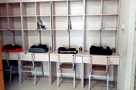 我是恒信彩小学二年级的一名生活教师。每天午餐后学生就开始了午休程序。站队回宿舍。学生们从餐厅出来后,由老师或老师指派的队长组织学生站好路队(老师清点人数),然后安静地走回宿舍楼层立定站好。老师进行路队点评,重复就寝安全要求,然后学生各自回自己的宿舍。(宿舍房间已经分好,床铺,衣柜 箱子 鞋架 水杯上分别贴有学生的名字)