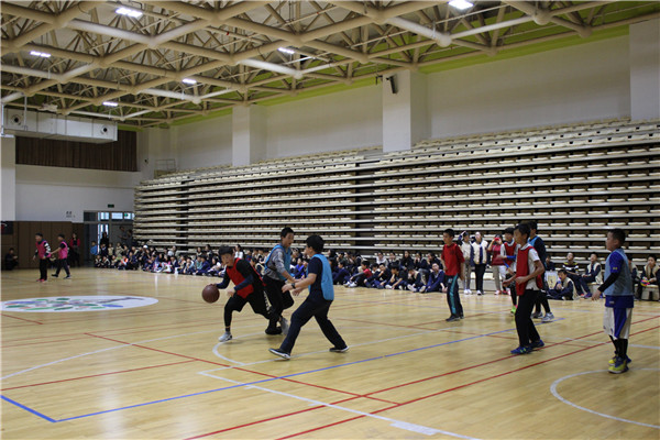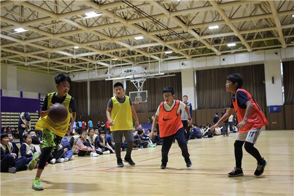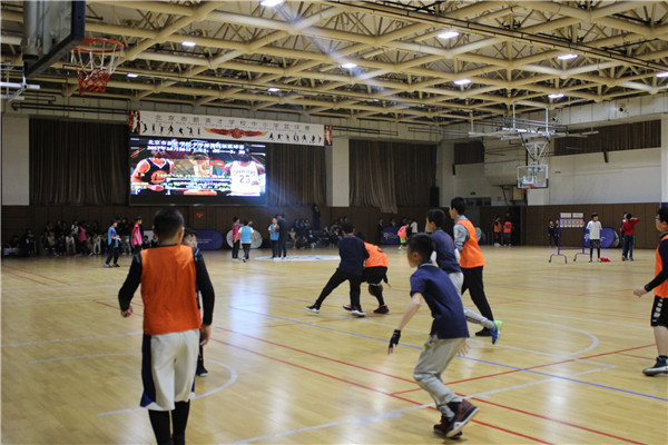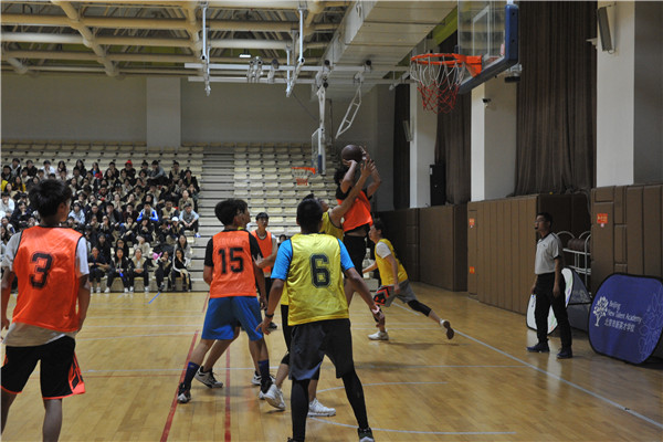 比赛采用小组循环和淘汰制,同时进行男篮与女篮的比赛,初高中男子组共有20个队,女子组共有11个队,小学则有12个队伍报名参加比赛。10月22日晚7:00在学校一楼篮球馆高二年级高三年级的揭幕战为中小学生篮球比赛正式拉开序幕。首先是AP中心舞蹈队同学们精彩的开场舞表演,表演结束后随着裁判员响亮的哨声,整个球场就充满了紧张的气氛,球员的激情全都淋漓尽致的体现在篮球场上。比赛进程中,各位队员都全力以赴,积极防守、合理的挡拆配合,精彩的单人突破技术,显示了高中同学们过硬篮球素养和极佳的心理素质。在场同学也情绪高涨、摇旗呐喊,不时为队员打气、喝彩,气氛热烈。场内、场外火爆的气氛融为一体!