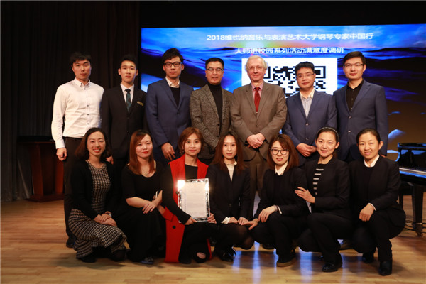 最后,瓦格纳教授与现场观众互动,并对观众提出的问题也进行一一解答。并对上台演奏的师生颁发荣誉证书,向学校颁发“维也纳国际青少年钢琴比赛邀请函”。
