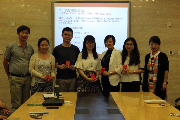 2015年9月9日晚7点,艺体信息中心在校三楼会议室隆重举行了2014-2015年度获奖教师表彰大会。会议由艺体中心副主任崔凤娟老师主持。学校领导魏庆佳校长、小学部李军校长、小学部朱丽丽校长、小学部胡金龙副校长、体育组、信息组、钢琴组、音乐组、美术组的全体老师出席了此次表彰大会。