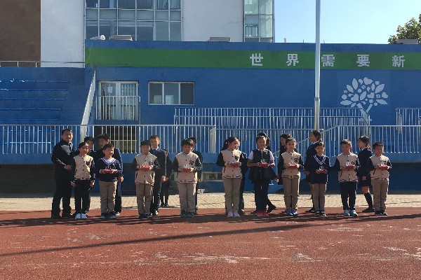 2016年10月7日 周一 上午在学部升旗仪式上,颁发了恒信彩第九届田径运动会“男武女舞百人团体操《山妞妞与稻草人》荣誉奖杯。他们是来自小学部二到五年级的100名学生,此时此刻,他们是最光荣的,因为他们不仅为男武女舞挣得荣誉,还为学部和班级挣得荣誉,再次祝贺他们。