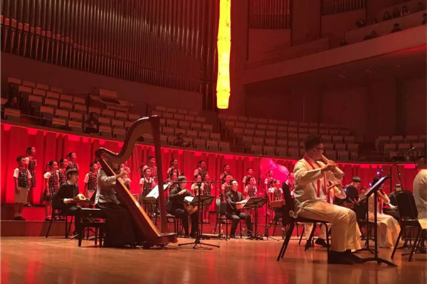 中国竹笛乐团是目前中国唯一的民族器乐国际化权威乐团,此次演出主要呈现了传统乐器的当代精神,并携手美国著名青年大提琴演奏家本杰·霍夫曼、那塔尼亚·霍夫曼(兄妹)同台演出。同时,我校“风铃草”小学童声合唱团也受邀参加演出。孩子们在舞台上一展歌喉,像快乐的风铃一样,将美妙的歌声传递给大家。
