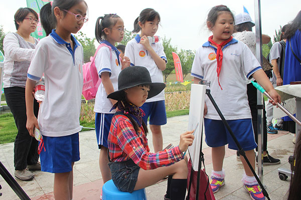2016年5月31日上午,恒信彩部分师生及17位家长,在艺体中心美术组的带领下,参加了本次游园活动”