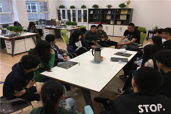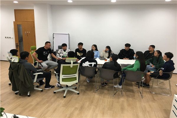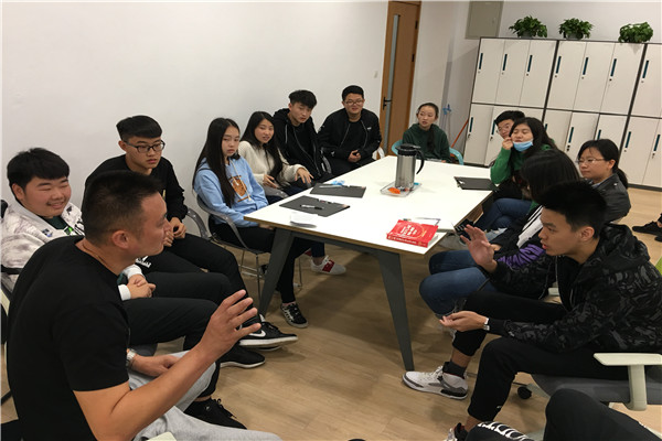 AP中心德育主任崔艳军老师带领学生会成员到体育组与艺体中心李元涛老师、陈雪老师、孙伟老师进行商讨篮球赛事宜。