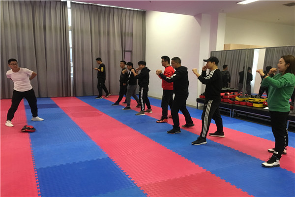2018年12月21日星期四7:40-8:40,体育组全体老师在四楼稣书馆进行散打体验课的教研。
