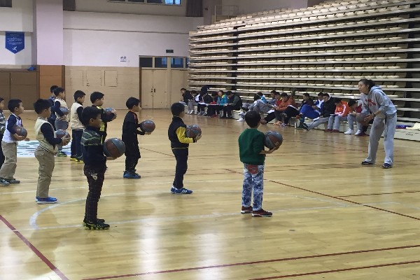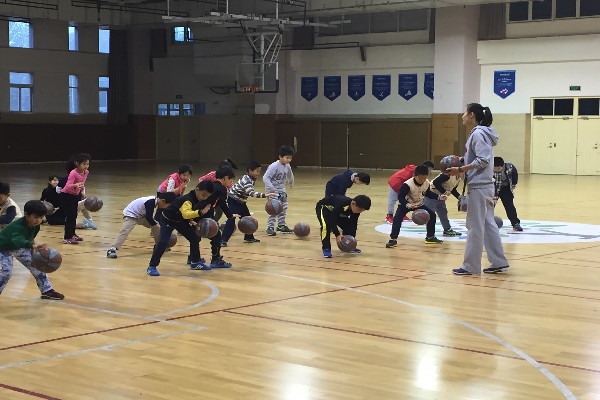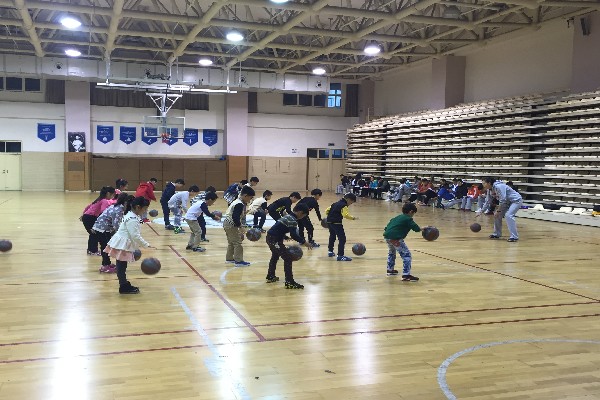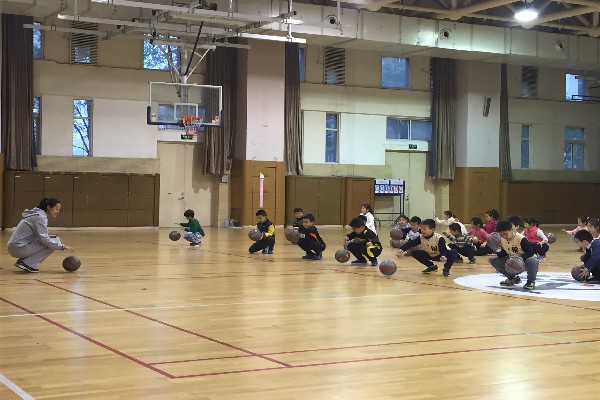 教师带领学生热身后开始了今天的主教材,原地拍小篮球。同学们在教师讲解并示范后跟着老师有模有样的拍起球来,开始的时候由于孩子们接触篮球少,老有同学掉球,但伴随随着老师的不断纠正动作及进一步的讲解练习,小学生们拍球越来越稳定了,到最后也竟然能拍着球做蹲下和起立的难度动作了。最后在花样接力比赛中结束了一节愉快的篮球课。