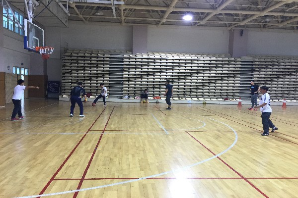 2016年4月21日,本周四上午8:10,由于雾霾天气原因,一周一次的体育组教研将在一楼篮球馆进行,由尹传松老师担任主讲,全体组员参与了本次教研。