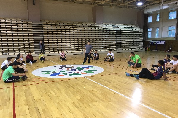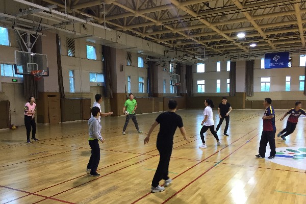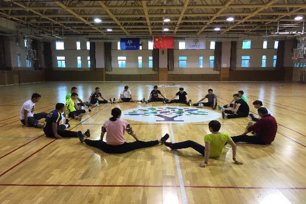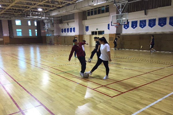 本次教研活动的主讲是尹传松老师,开始尹老师带领大家玩了一个游戏“美式足球”,在游戏中主要以热身为主,同时练习大家行进间的手上传接球和场地的位置感,大家在游戏中不光达到了热身的目的,还体现到游戏带来的乐趣。游戏后所有老师在篮球场中圈简单的做了韧带拉伸,并由尹老师讲述脚背内侧踢球的技术要领:1、斜线助跑。2、支撑脚距离球10-15公分。3、摆腿,脚北内侧击球。4、随前动作。一边讲解一边示范,把每个技术环节简单明了的描述给大家。并分组进行了固定踢球和远距离踢球练习,在练习中尹老师再次针对错误动作进行纠正、讲解,并表扬鼓励做正确的老师,又一次详细讲述了脚背内侧踢球技术动作的要点,进行反复练习,老师们从不同程度上对踢球动作的掌握都有了很大的进步。最后我们每人展示一次脚背内侧踢球的动作,结束了本次的足球教研。