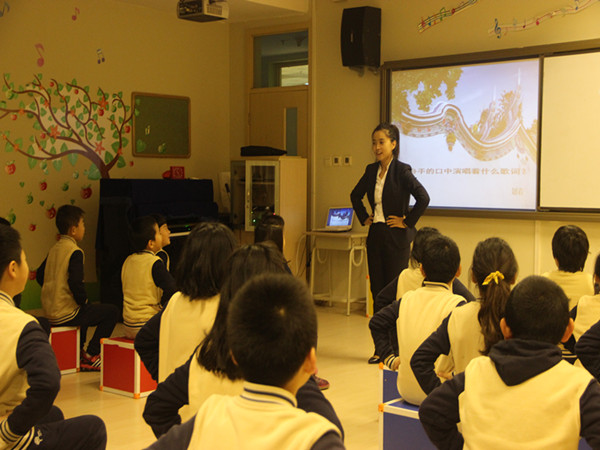 2015年11月10日,林佳雨老师与四年一班同学共同为老师们带来了一节中国民族民间音乐欣赏课《划龙船》,课堂上孩子们通过律动跟随龙船号子的节奏体验了号子音乐整齐化一的特点,林佳雨老师带领同学们通过采用六面凳作为节奏乐器的方式,充分使孩子们感受到了成为小演奏家的快乐,并同时感受到与众不同的一领众和的特点。通过学习四一班的同学们创造出属于自己的拔河号子。课前四一班的同学主动来到218音乐教室,整理教室卫生,深深的让老师们感受到了他们的成长。