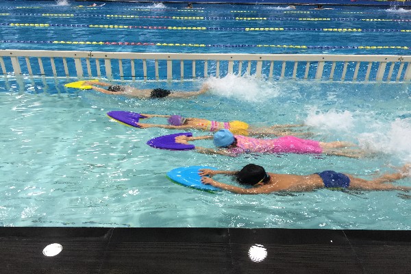 4、根据少儿学员爱动厌静怕累没长性的心理特征,我们采用少讲多动来感召并引领学员快速进取等办法组织好教学。使教学活跃一些,学习气氛浓一点,让其游的开心一点。从而增强活力,坚定信心,使其在快乐中忘掉疲劳,完成课时任务。
