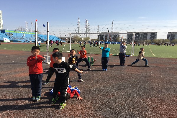 接着是基本部分,今天的任务是复习一路基础长拳的第一段,我不用以往的晋级游戏的方式了,我把学生分成两组,自己推选出组长,然后给自己的小组起一个名字,然后两个小组开始PK,先提要求,然后开始比赛,在比赛中,我就可以把本节课的教学目标渗透进去,比如,第一局,先比赛学生在练拳时候的马步、弓步;第二局在比赛孩子们掌握动作的熟练度等,把难度层次体现出来,学生就像打了鸡血似得,甚至小组组长还要求在比赛前开个小会,研究一下怎么才能取胜,打败对手。在教学目标达成后,再以“横扫千军”的游戏发展孩子的下肢力量,在游戏中输的同学就做俯卧撑,以达成上下肢配合练习的效果。最后,以坐姿,练习简单的柔韧,练习时加入各种有趣的模仿。最后总结下课。