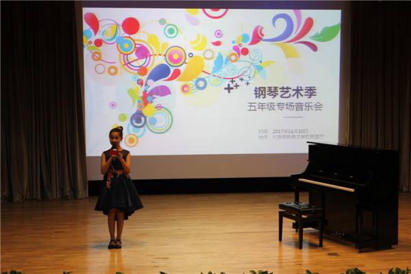 五年级的孩子,在高小部过度了一年,具有了大孩子的气息,他们对于艺术季的演出已经早有准备,为了能在舞台上展现最棒的自己,他们平时勤于练习,有目标有计划,自己的着装早早准备好,不用父母操心,不用老师着急,一切都是那么的有条不紊。钢琴艺术不仅仅是表现音乐,更多时候,我们看到的是音乐带给孩子们的那种独特的气质、有品位的审美和善于思考的内涵。加油吧孩子们,在你们成长的道路上,有老师和爸爸妈妈的支持,相信你们定能前途无量,展翅高飞!