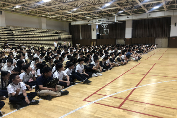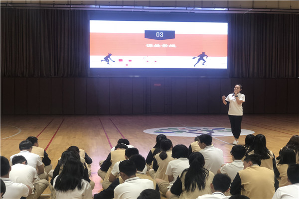 2018年9月6日星期四上午9:30分,体育组老师组织了中学部全体学生开展了新学期开学第一课,本次主讲老师陈雪老师在三个部分与学生进行了分享,重点与学生进行了安全与健康的知识普及。