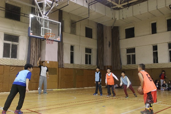 2015年11月11日,下午17:00在一楼篮球馆内进行了小学五、六年级篮球比赛决赛的争夺。本次比赛看点重重,两场对决的班级实力均等,不相上下,都是过五关斩六将闯进最后的决赛。首先1号场地对阵的班级是六年四班VS六年二班,2号场地对阵的班级是五年一班VS五年五班。