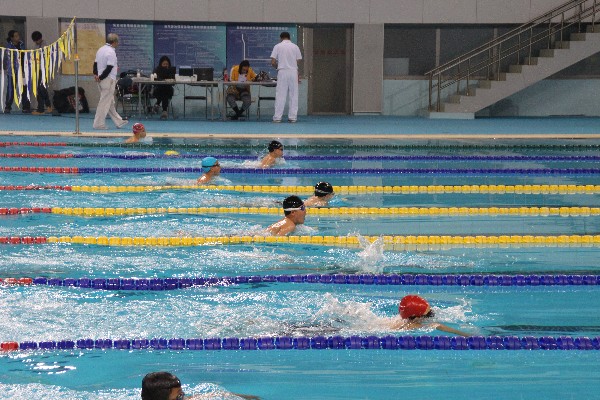 比赛当天,清晨6:00,虽然天还未亮,寒风瑟瑟,但我们已经整装待发,从学校出发,前往英东游泳馆参加此次游泳比赛!由于学生对赛场环境不熟悉,所以赛前的热身活动尤为重要。进入游泳馆后,我们的学生在老师的带领下,迅速换好衣服进入泳池。虽然热身的时候每条泳道几乎都挤满了人,但我们的学生仍然能够一个跟着一个,像专业游泳运动员一样,完成赛前的热身活动。比赛开始后,学生们奋勇拼搏,勇往直前,将自己平时的训练水平发挥到了极致。虽然对手很强,但我们的学生没有退缩,仍然顽强拼搏到最后,尽全力完成每一项的比赛,展现出体育的拼搏精神!