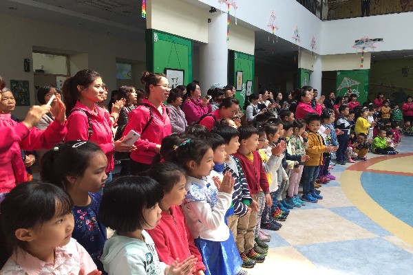 2016年4月26日上午,恒信彩迎来了来自刘诗昆珠江幼儿园的一百多位小朋友和家长来我校参观,四年6班全体学生热情接待。在小学部大厅向小朋友和家长们介绍了我校的特色文化,并展示了我校的男武女舞特色课程。