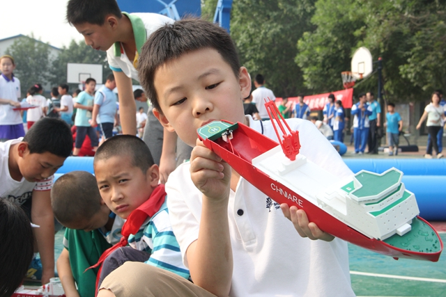 我校13名中小学生参加了本次比赛,航海比赛项目分为:“极光”2.4G电动遥控双体快艇、“自由号”电动遥控游艇“徐州号”导弹护卫舰电动拼装模型、“温州号”明轮电动拼装模型、“中国海警船”电动拼装模型、“雪龙号”科学考察船电动拼装模型、“银河战士”空气动力快艇拼装模型。酷暑炎热难挡运动员高涨的热情,他们神情专注、沉着冷静,每赛一轮后都相互总结经验,为队友加油助威。