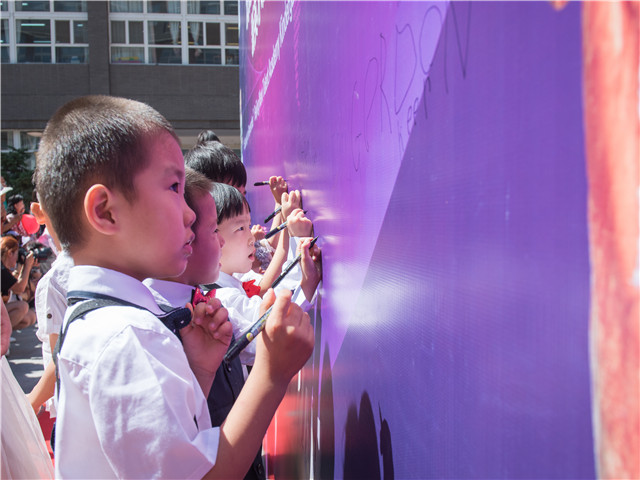 四季广场的花坛前,伫立着幼儿园孩子的签字板,与国际戛纳电影节一样,各路明星在签字版上,留下属于自己的符号。签字板上遍布着各个班级小代表的倩影,他们可是来头不小,全电影制作的相关工作人员呢,你找到了吗?专业的录音师、认真的导演、解放天性的小演员。看!签字板前小朋友们自信的摆着pose,热情的同亲友们互动,挥舞的小手,也具有明星范儿。