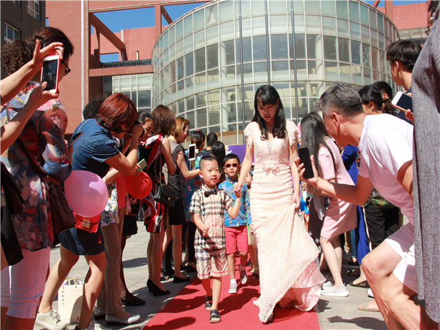 红色的地毯,从学校的四季广场一直延续到校门,在走向幼儿园欢乐的门口。蜿蜒的红地毯,如此之长,为的是充分让每个孩子展示自己的美与自信;蜿蜒的红地毯,虽如此之长,对于红毯旁为孩子们加油助威的家长与校友来说,却远远不够。他们可爱的身影,怎么会有人看的够呢!